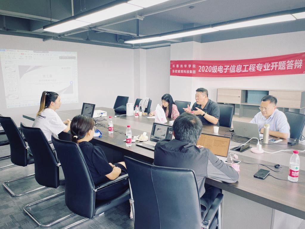 在进行开题答辩前,电子信息工程专业与数字媒体技术专业系主任与企业老师一同在5月20日-21日以线上方式进行了毕业设计开题动员会,细致讲解了毕业设计选题的要求与方向,并部署了毕业设计相关工作安排。随后,由员工自行进行毕业设计选题,由企业老师进行题目初审,由校方老师进行题目二审,审题结束后进行开题答辩工作。6月6日-7日,毕业设计开题答辩采用线上线下相结合的方式进行,电子信息工程专业系主任卢秀和、数字媒体技术专业系主任李倩亲自前往湖州实训基地进行线下答辩,其余在校答辩组老师针对员工汇报内容和开题报告文本内容进行了线上提问,并从选题的实用性、理论依据和内容之间的逻辑关系及研究方法的合理运用等不同方面提出了建设性的意见和建议,帮助同学们进一步明确了研究目标,理清了研究思路,为下一步毕业设计的制作与论文的撰写指明了方向。经过老师们的耐心指导,答辩现场每一位同学都对自己的选题有了更加清晰的理解,提前精心为开题答辩制作了PPT,并主要从研究背景及意义、国内外研究现状、论文研究方法、论文提纲等方面进行了开题论述。