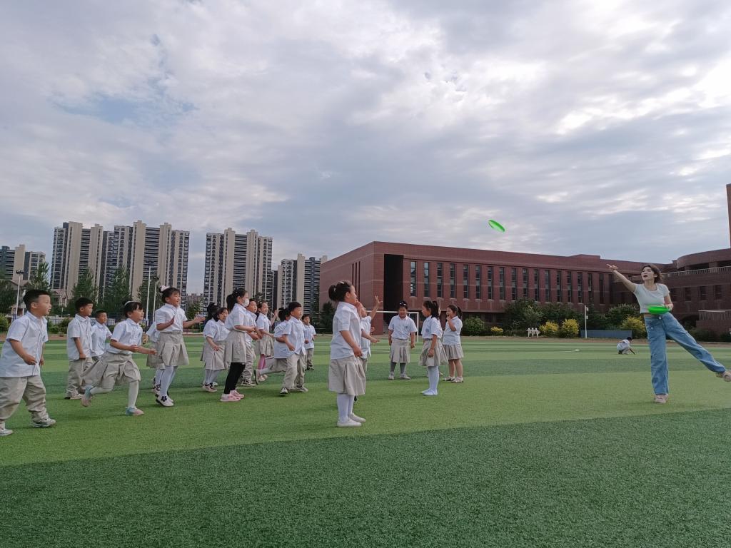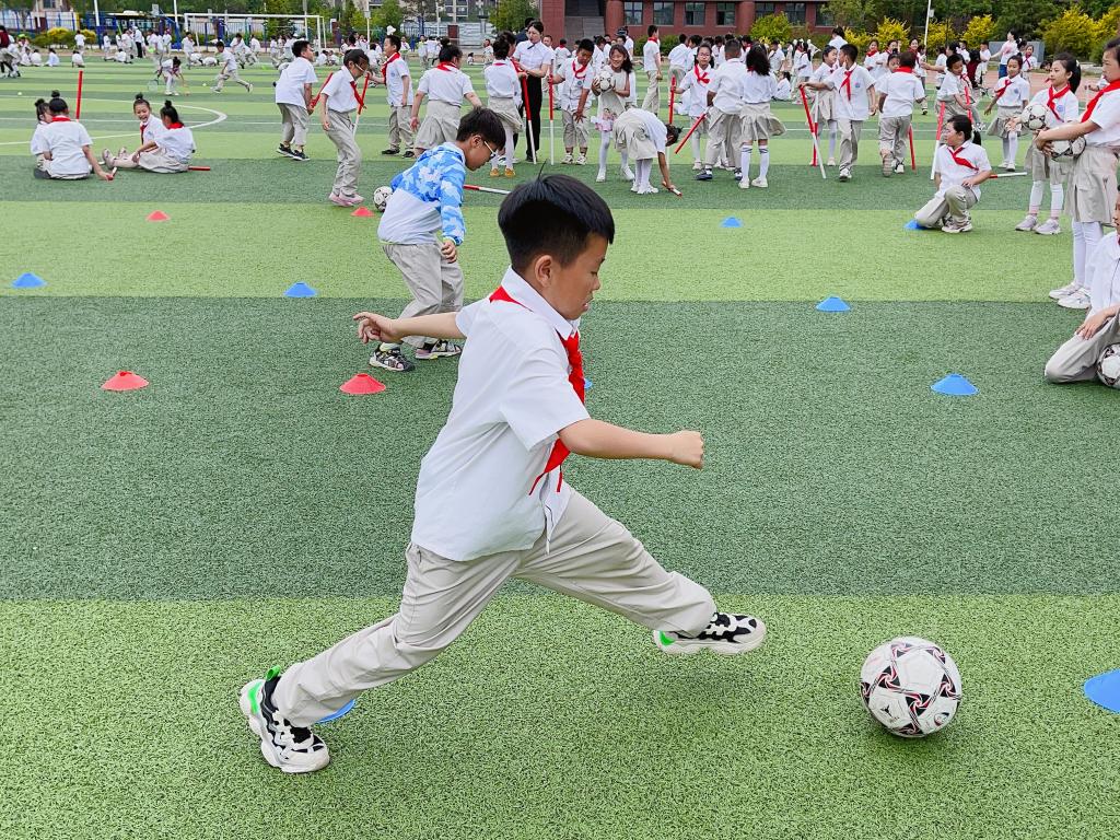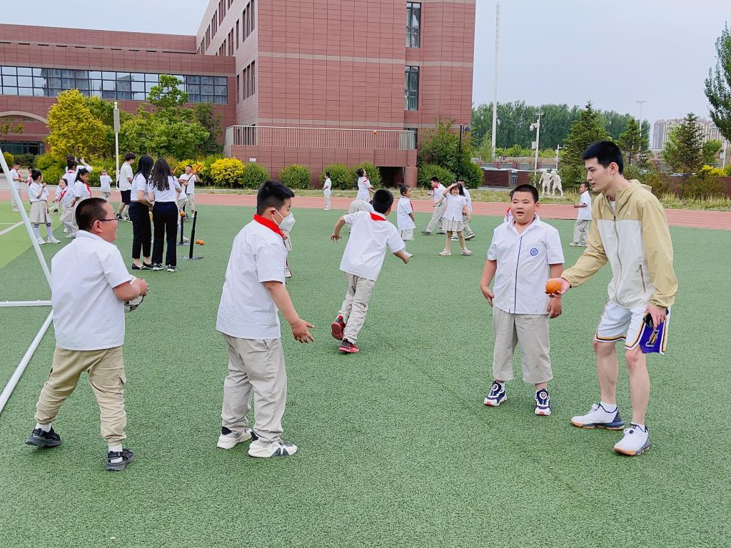 活动最后,在刘晨老师和志愿者们的带领下,孩子们来到校园操场与志愿者们一起进行了“萝卜蹲”、“123看这边”、“眼疾手快”、“足球绕桩”等游戏项目,现场气氛热烈,操场上处处洋溢着欢乐的笑声。交流互动过程中,志愿者勉励孩子们要牢记习近平总书记嘱托,从小听党话跟党走,努力成长为德智体美劳全面发展的社会主义建设者和接班人。