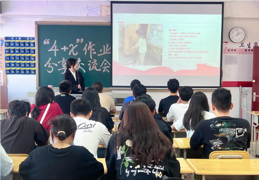会议伊始,各班级团支部书记总结了暑假“4+X”作业的总体完成情况,并对完成“4+X”作业较好的同学给予了肯定和表扬。接下来,各班级同学代表通过PPT汇报的形式分享了暑假“4+X”作业的心得体会。分享过后,各班级同学进行了交流互动,大家积极表达了自己对优秀作品的认可和肯定以及各自在学习生活中的感悟与成长,同时,也纷纷表示,通过“4+X”作业使自己学到了更多的生活技能、专业知识和调研技巧。