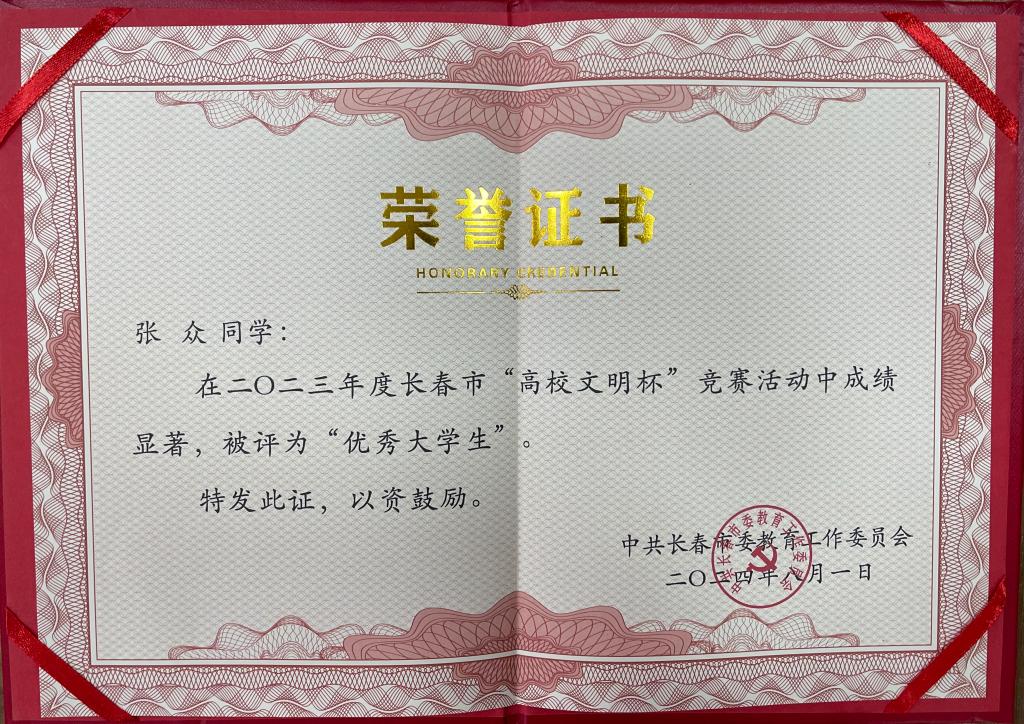 近日,中共长春市高等公司工作委员会下发《关于表彰2023年度长春市“高校文明杯”竞赛活动先进集体和先进个人的决定》,其中unibet荣获“员工管理工作先进集体”称号,2021级3栋2门301b寝室荣获“文明寝室”称号,2021级电气工程及其自动化专业电气21408班张众荣获“优秀老员工”称号。