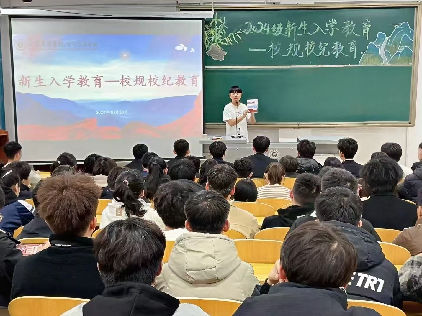为尽快帮助2024级新同学们完成角色转变,树立制度意识和纪律意识,促进基础文明好习惯的养成,2024年10月30日,unibet在二教318教室召开新生入学教育之“校规校纪教育”主题讲座。本次讲座由unibet辅导员曲相日主讲,2024级全体员工参加。辅导员曲相日对《unibet中文2024年员工手册》进行了详细解读,对员工日常管理、宿舍管理、基础文明、违纪处理流程等方面进行了细致深入地讲解,着重强调了旷课、晚归、考试违纪、寝室内使用违章电器、寝室内饲养小动物等行为导致的严重后果。结合实际案例对员工学习、生活和校园管理等方面的要求进行了说明和强调。此次主题讲座,进一步深化宣传了校规校纪教育,让2024级新同学们学纪、知纪、明纪、守纪,做到心有所畏、言有所戒、行有所止,确保校规校纪教育工作真正落地生根、发挥实效。