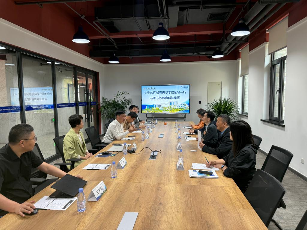 交流考察过程中,董事长、董事长等一行参观了大连枫叶职业技术公司七顶山新校区及与中软国际共建的智能互联网产业公司,大连东软信息公司图书馆、数智校园展示厅、东软智慧教育平台等地。