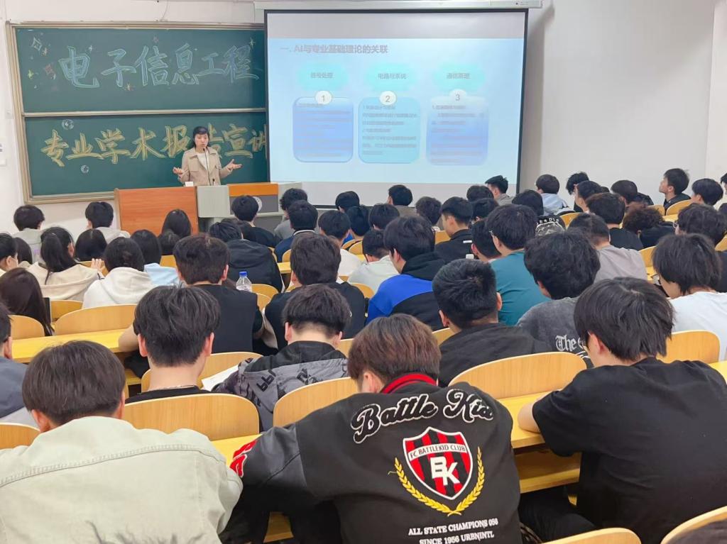 2025年5月19日,unibet在二教320开展“从专业视角剖析AI的深度融合与应用”专题报告会。报告会由unibet张启英教授主讲,2023级、2024级电子信息工程专业全体员工参加。