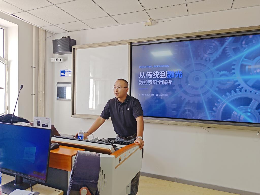 仪式上,刘晨晨深情回顾了自己在母校求学的经历,表达了对母校和老师辛勤培育的感激之情。介绍了捐赠设备的功能特点与实际应用价值,并结合自身工作经验,分享了工业自动化与智能制造领域的最新技术动态与发展趋势。他表示,希望通过此次捐赠,为学弟学妹提供更优质的实践平台,助力他们成长成才,为母校发展贡献一份力量。