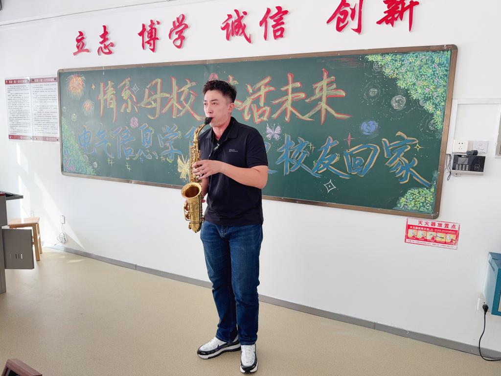 “情系母校,共话未来”员工茶话会在实验楼403室温馨举行。公司党总支副书记李艳、系主任、教师代表、辅导员与返校员工们欢聚一堂,共同观看公司宣传片。员工代表现场讲解科技作品,展现创新实力。辅导员关浩月萨克斯独奏《回家》深情悠扬,将现场气氛推向高潮。师生与员工畅谈公司和公司发展成就,回忆往日校园趣事,现场欢声不断、情意融融。