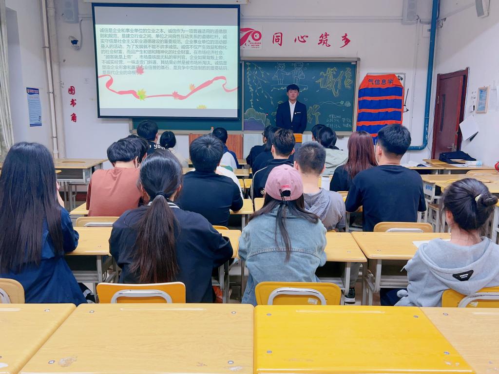 为培育和践行社会主义核心价值观,增强同学们的诚信意识和责任意识,2023年5月21日,unibet开展“诚信我先行”主题班会。各班级主讲人结合社会主义核心价值观的内涵,引导同学们树立诚信为本、守信光荣、失信可耻的信用意识和道德观念,帮助同学们树立诚实守信的观念,争做诚实守信的倡导者、践行者和表率。