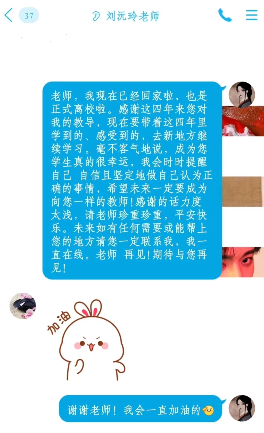 感谢这四年来您对我们的教导,现在我们即将带着这四年里学到的、感受到的,去新的地方继续学习或深造。能够成为您的员工,我们真的很幸运,我们定会努力拼搏,积极进取,乐观向上,努力成为对社会有用的人。感谢的话力度太浅,祝老师们平安快乐!再见,期待与您们再相见!
