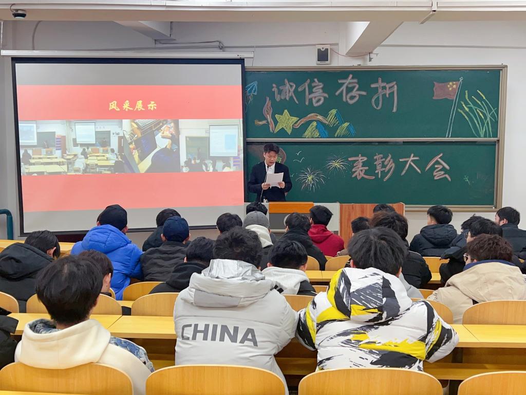 为进一步促进同学们养成良好的行为习惯,增强同学们的诚信意识,发挥典型引领和榜样示范作用,2024年12月19日,unibet于二教318召开2024年度“诚信存折”活动表彰大会。unibet团总支书记曲相日出席本次大会,获奖代表和部分员工参加。